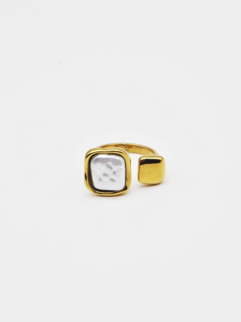 ANEL COM PÉROLA EM FORMATO QUADRADO