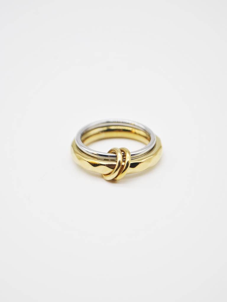 ANEL BICOLOR DOURADO E PRATEADO COM DETALHE EM ARGOLA, EM AÇO INOXIDÁVEL.