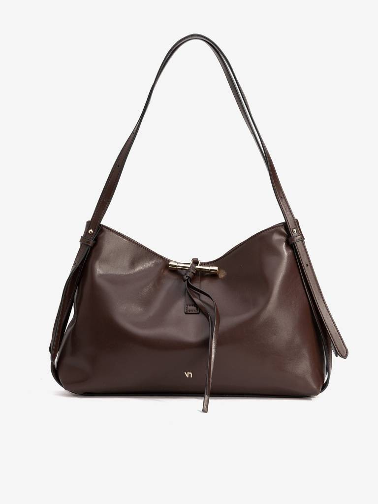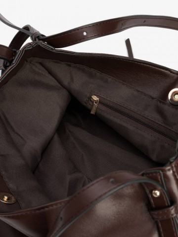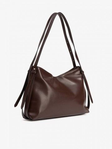 CARTEIRA CASTANHA COM ALÇA AJUSTÁVEL, FECHO MAGNÉTICO E BOLSO INTERNO COM FECHO DE CORRER