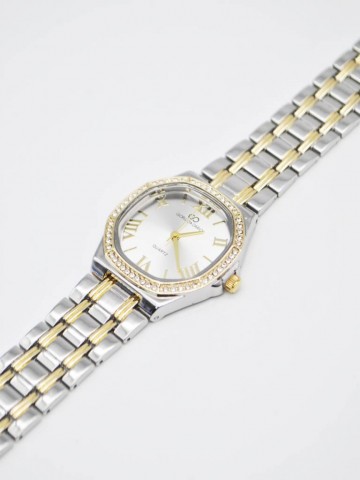 RELÓGIO ANALÓGICO COM MOSTRADOR REDONDO E BRACELETE DE AÇO INOXIDÁVEL, DESTACANDO-SE PELA DURABILIDADE E ELEGÂNCIA.
