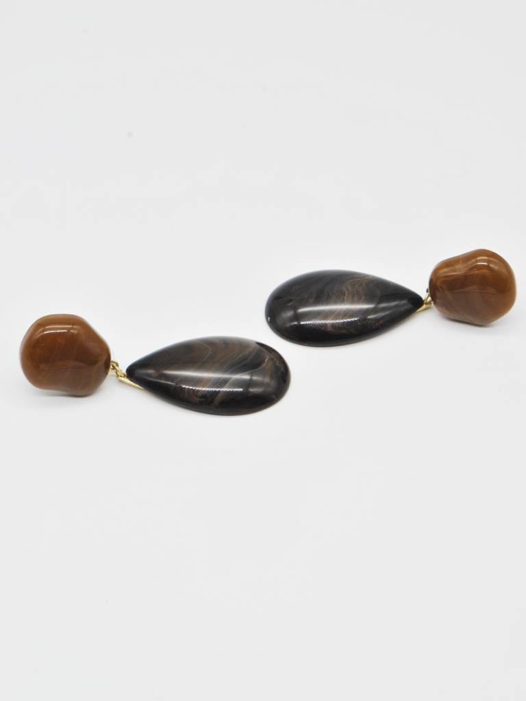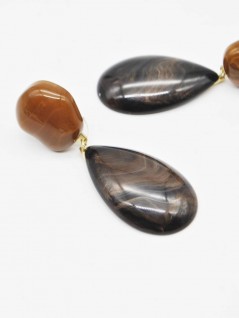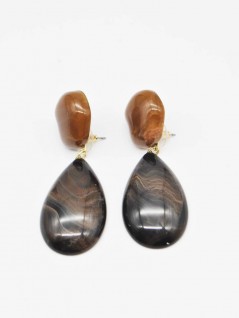 BRINCOS COMPRIDOS COM PEDRAS CASTANHAS