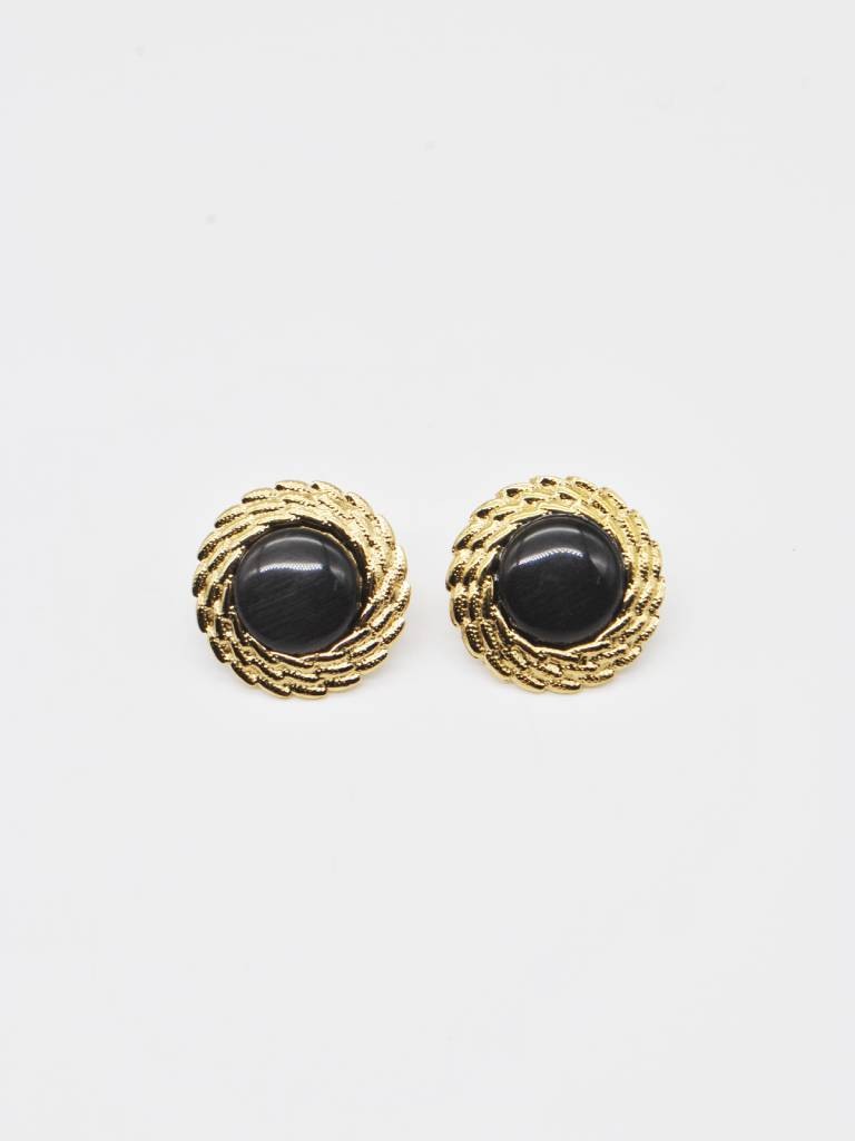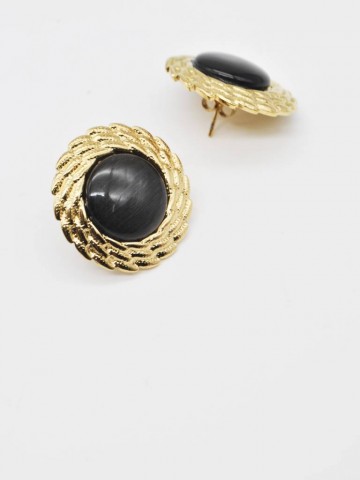 BRINCOS CURTOS COM PEDRA E BORDAS TRABALHADAS DOURADAS