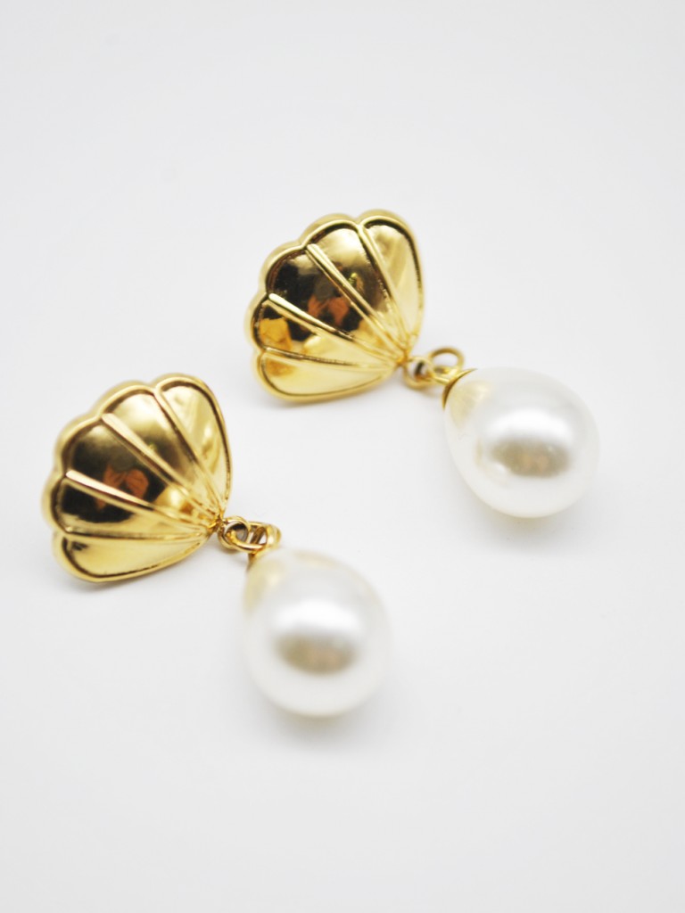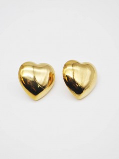 BRINCOS DOURADOS EM FORMATO DE CORAÇÃO, FEITOS EM AÇO INOXIDÁVEL, ELEGANTES E COM BRILHO DURADOURO.
