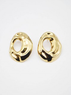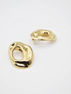 BRINCOS DOURADOS TEXTURIZADOS EM FORMATO OVAL, EM AÇO INOXIDÁVEL.