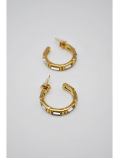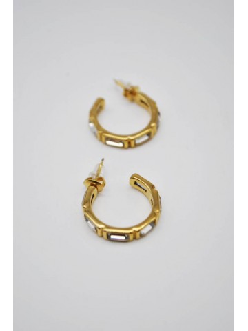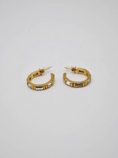 BRINCOS DE ARGOLAS PEQUENAS COM PEDRAS BRILHANTES EMBUTIDAS.