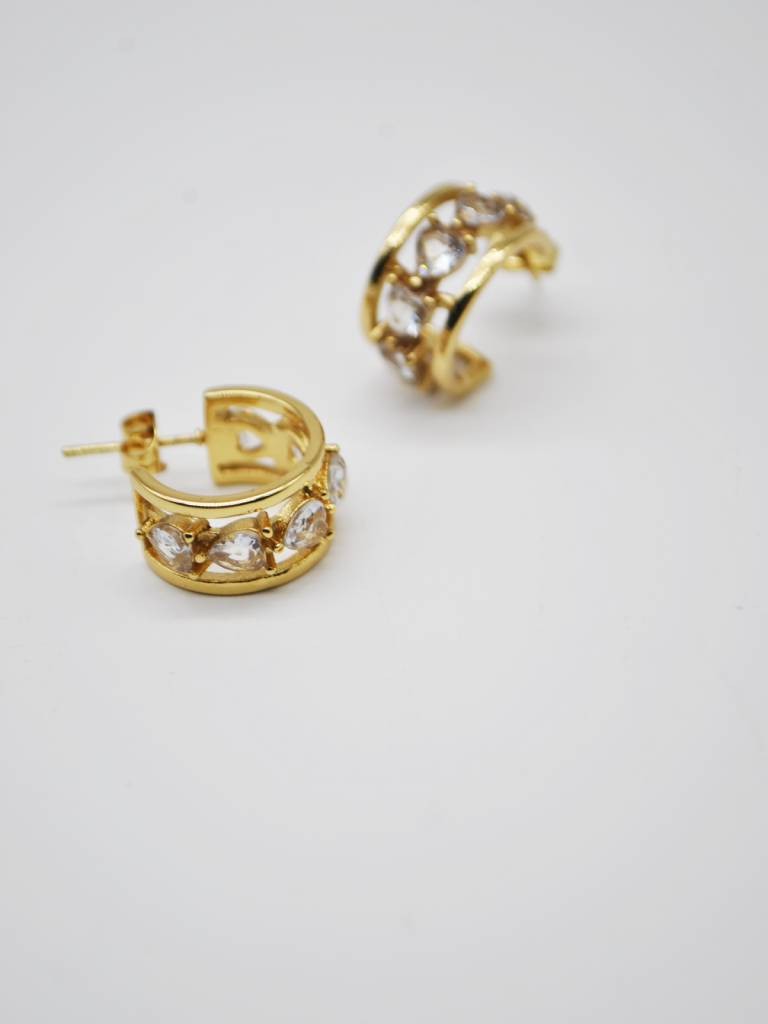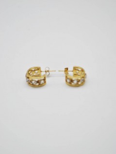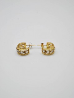 BRINCOS DOURADOS DE ARGOLA LARGA COM PEDRAS BRILHANTES CRAVEJADAS.