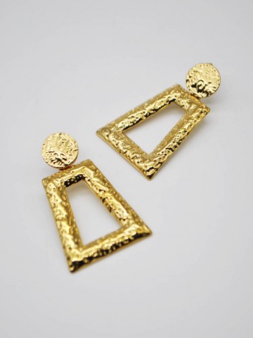 BRINCOS GEOMÉTRICOS DOURADOS COM EFEITO MARTELADO.