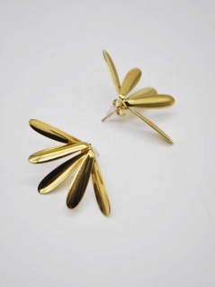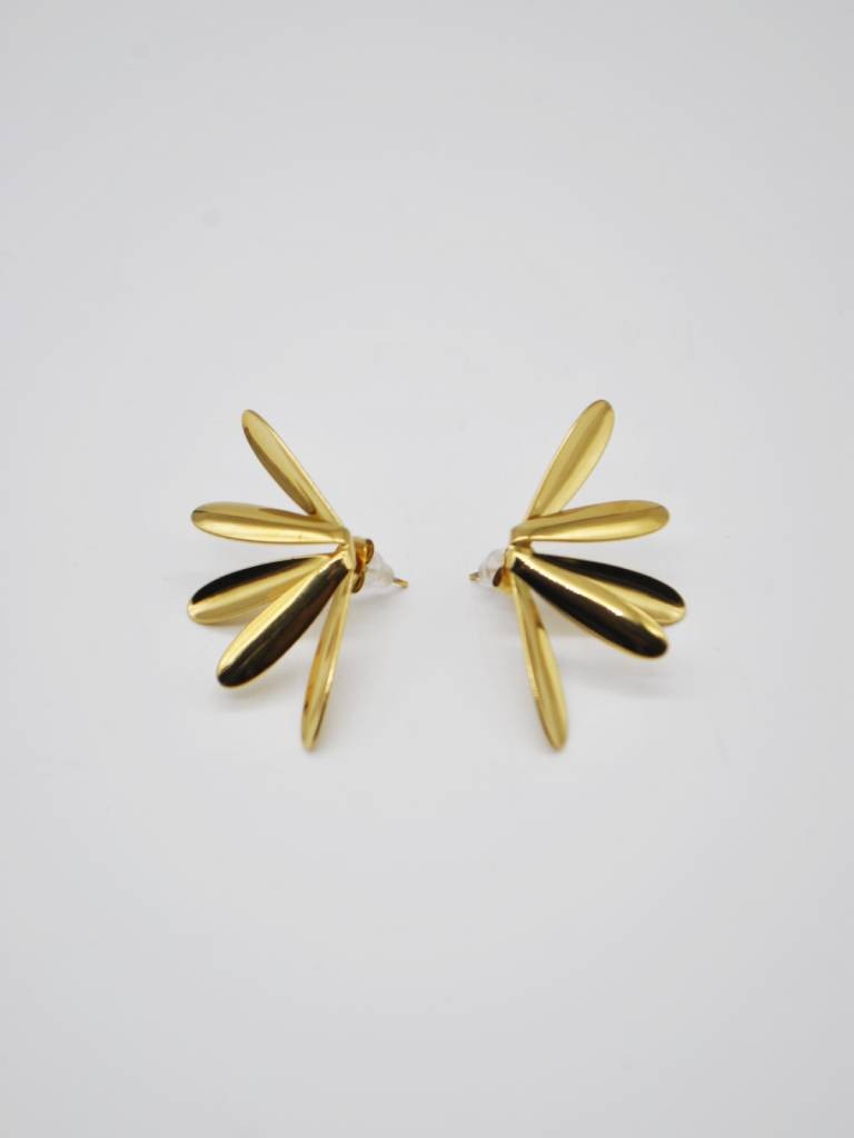 BRINCOS DOURADOS EM FORMATO DE PÉTALAS COM HASTES OVAIS.