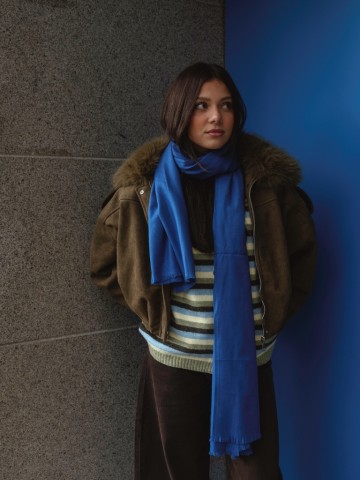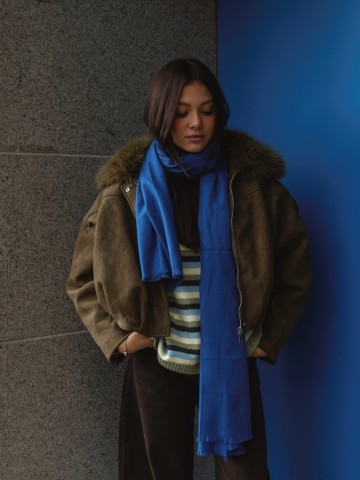 Casaco bomber efeito suede. Gola em pelo amovivel. Interior forrado a pelo. Pregas na parte inferior. Fecho frontal com fecho de correr e botões de pressão. Bolsos Laterias.