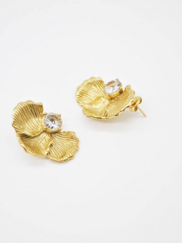 Novo Adicionar à Wishlist Vista rapida BRINCOS MEIA FLOR DOURADA 8,12 € Descrição: Brincos meia flor dourada com brilhante no centro. Composição: 100% Aço Inoxidável