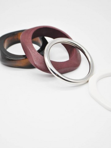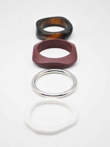 Conjunto de pulseiras de madeira.