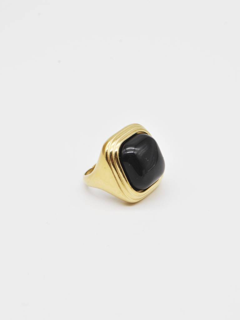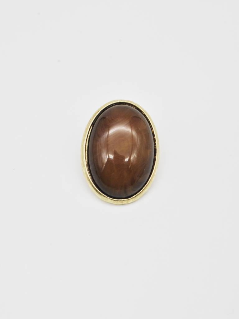 Pulseiras de pedras marmorizadas com detalhes dourados entre elas.