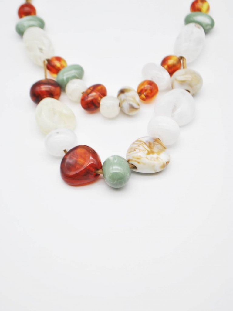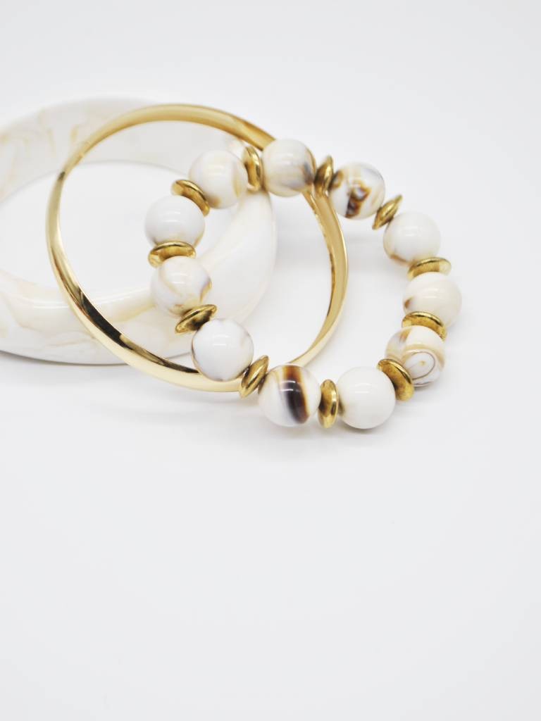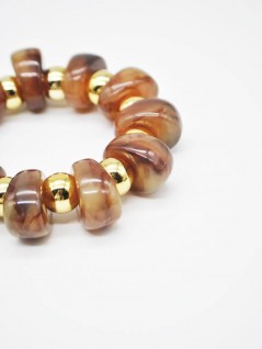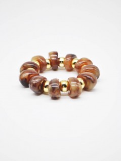Pulseira elástica com contas arredondadas e detalhes dourados.