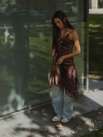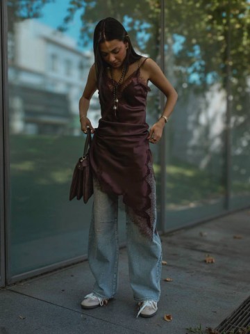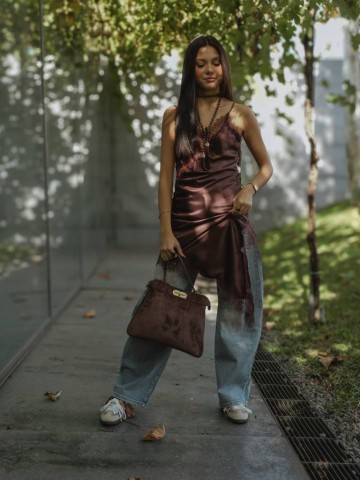 Calças estilo balão com brilhantes.