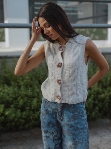 COLETE DE LÃ COM BOTÕES EM FLOR