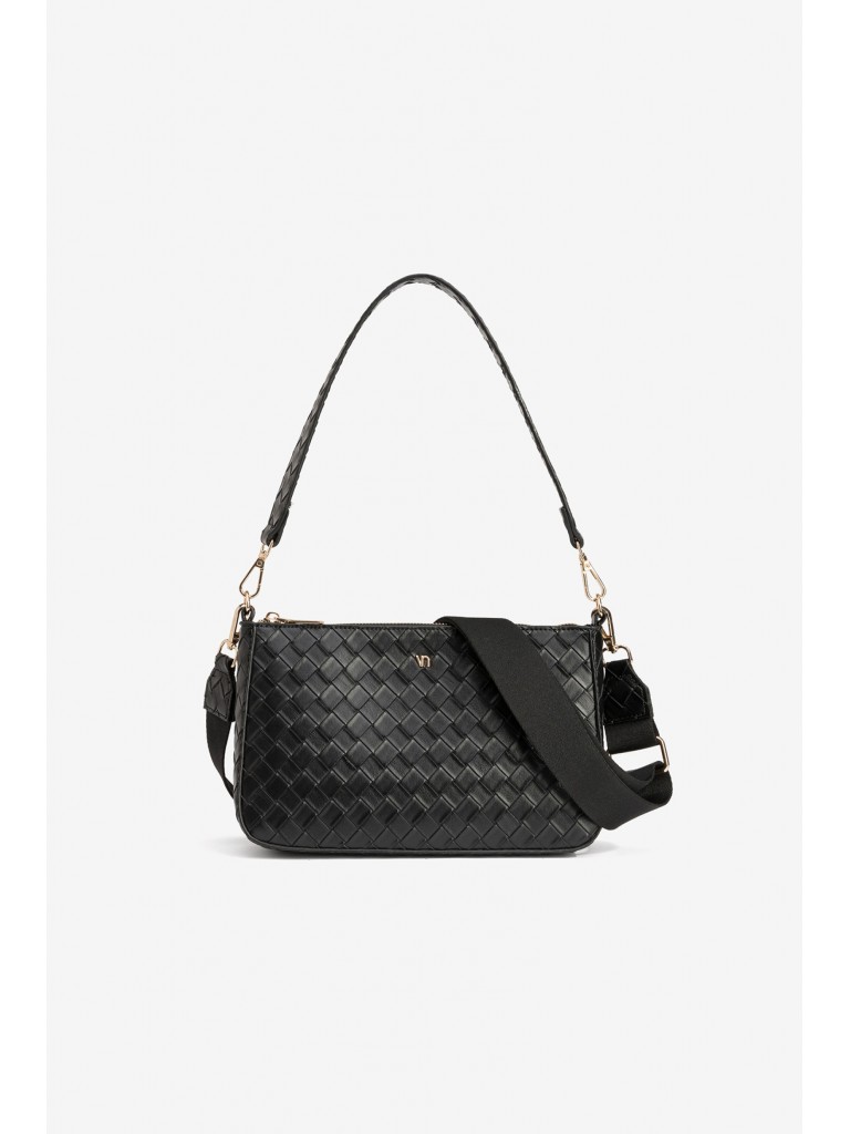 Porta-moedas de cor castanho, design compacto com fecho dourado e tachas douradas decorativas na frente.