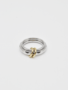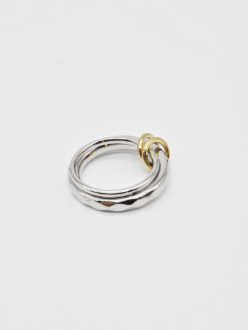 ANEL DUPLO EM PRATEADO COM TEXTURA E ELO DOURADO.