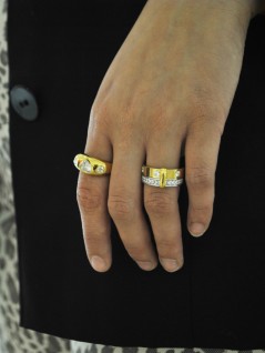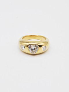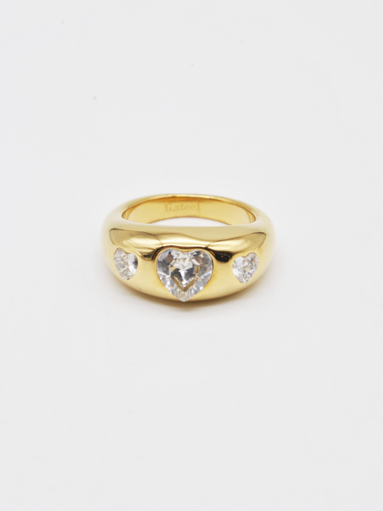 ANEL DOURADO COM CORAÇÕES CRAVEJADOS EM ZIRCÔNIA.