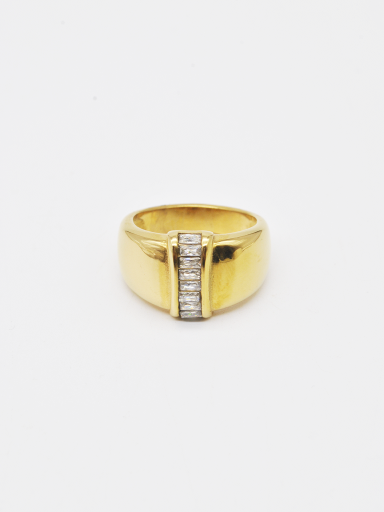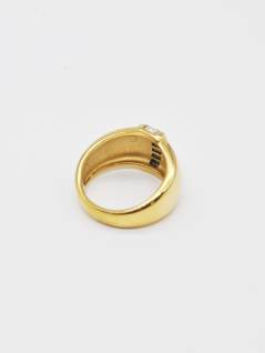 ANEL DOURADO COM BRILHANTES NO CENTRO EM ZIRCÔNIA.