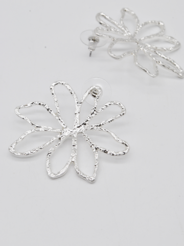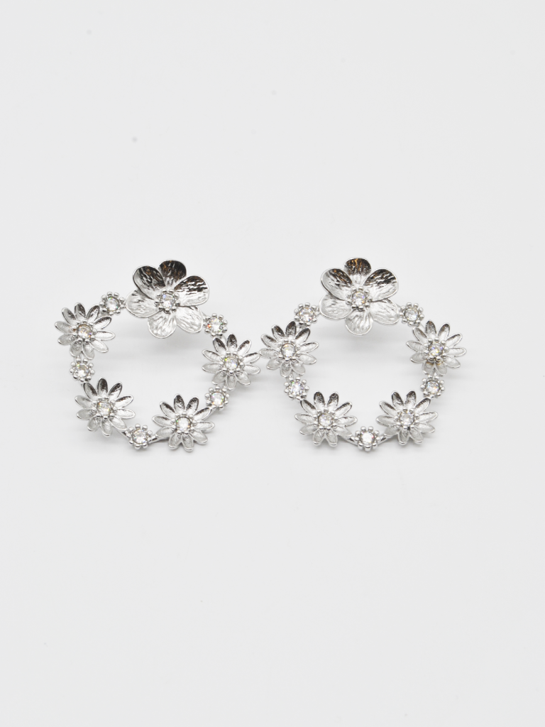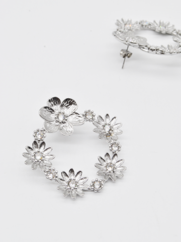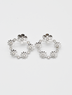 BRINCOS DE FLOR DE FORMA CIRCULAR EM PRATEADO ELEGANTES.