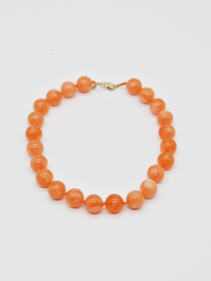 COLAR COM CONTAS EM COR DE LARANJA COM DETALHES EM BRANCO, EFEITO TIPO MÁRMORE.