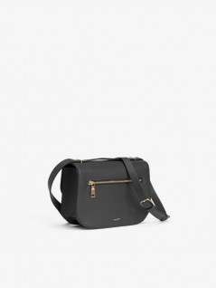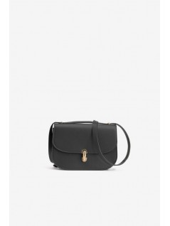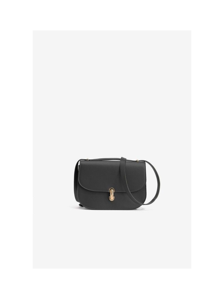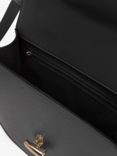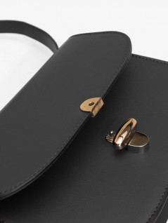 CARTEIRA PRETA ELEGANTE. ALÇA A TIRACOLO. FECHO DOURADO À FRENTE. BOLSO TRASEIRO.