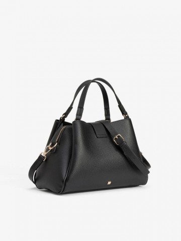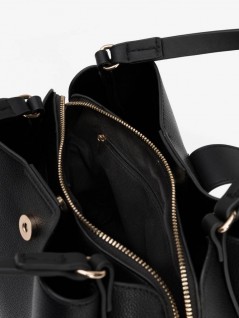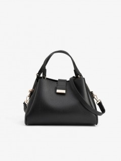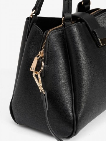 CARTEIRA PRETA COM ALÇA AJUSTÁVEL,COM FECHO DOURADO E TEXTURA SUAVE
