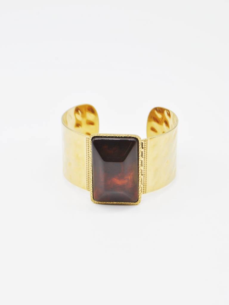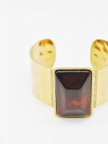 DESCRIÇÃO: PULSEIRA DOURADA ESCRAVA, AJUSTÁVEL , COM DETALHE EM PEDRA RETANGULAR .