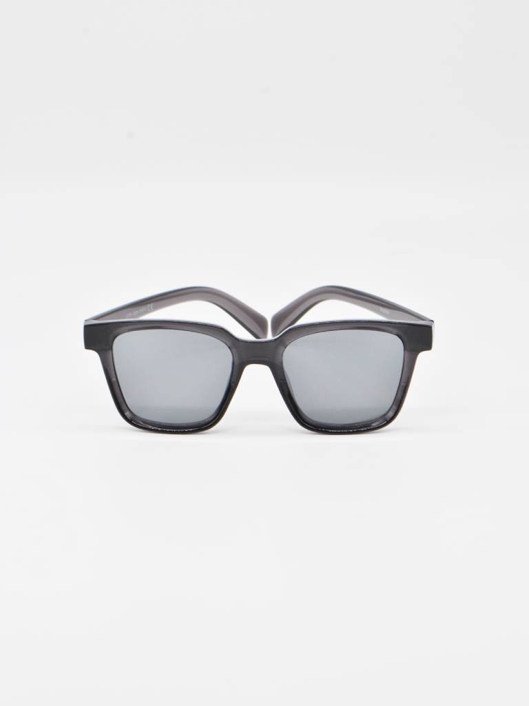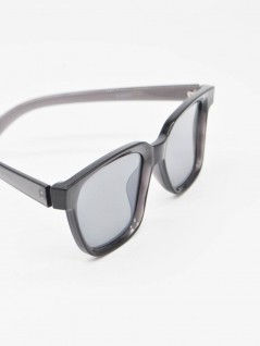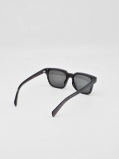 ÓCULOS DE SOL DE SILHUETA QUADRADA COM LINHAS MODERNAS E ACABAMENTO EM PRETO TRANSLÚCIDO, DESIGN MINIMALISTA E LEVE .