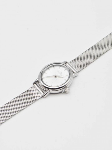 RELÓGIO ANALÓGICO COM MOSTRADOR OVAL PRATEADO AJUSTÁVEL ,DE AÇO INOXDIÁVEL, DESTACANDO-SE PELA DURABILIDADE E ELEGÂNCIA.