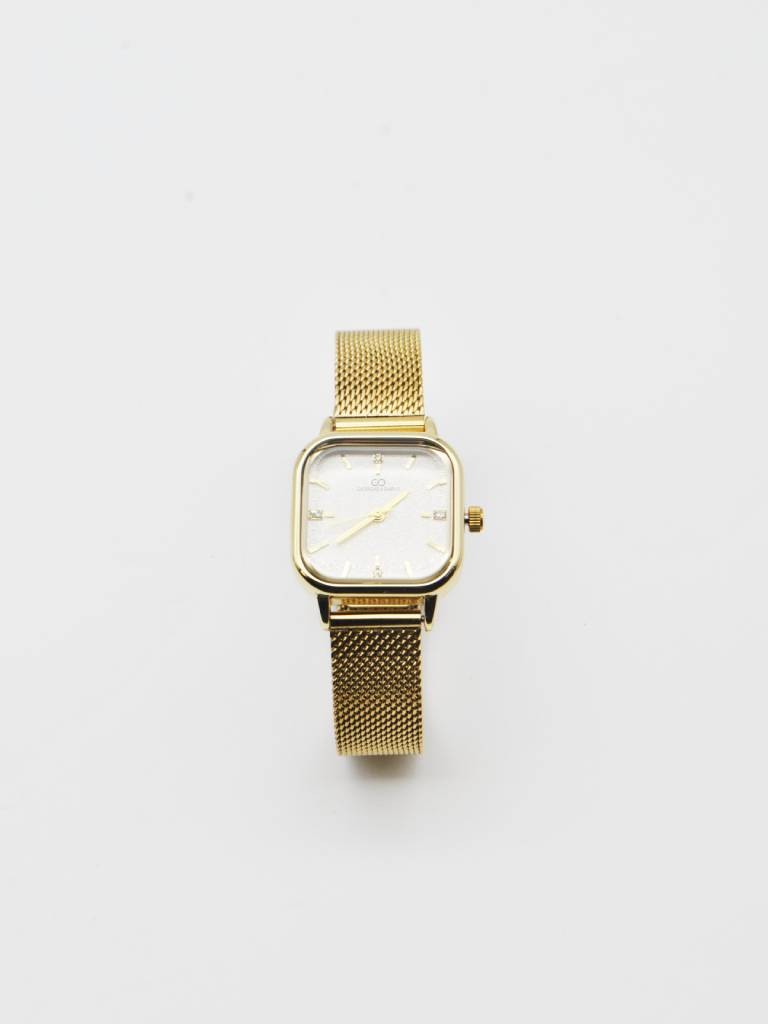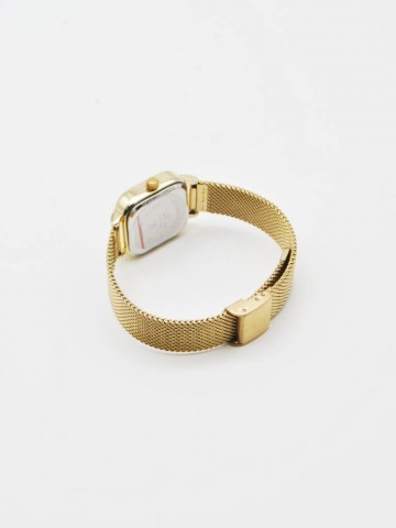 RELÓGIO ANALÓGICO COM MOSTRADOR QUADRADO DE AÇO INOXDIÁVEL, DESTACANDO-SE PELA DURABILIDADE E ELEGÂNCIA.