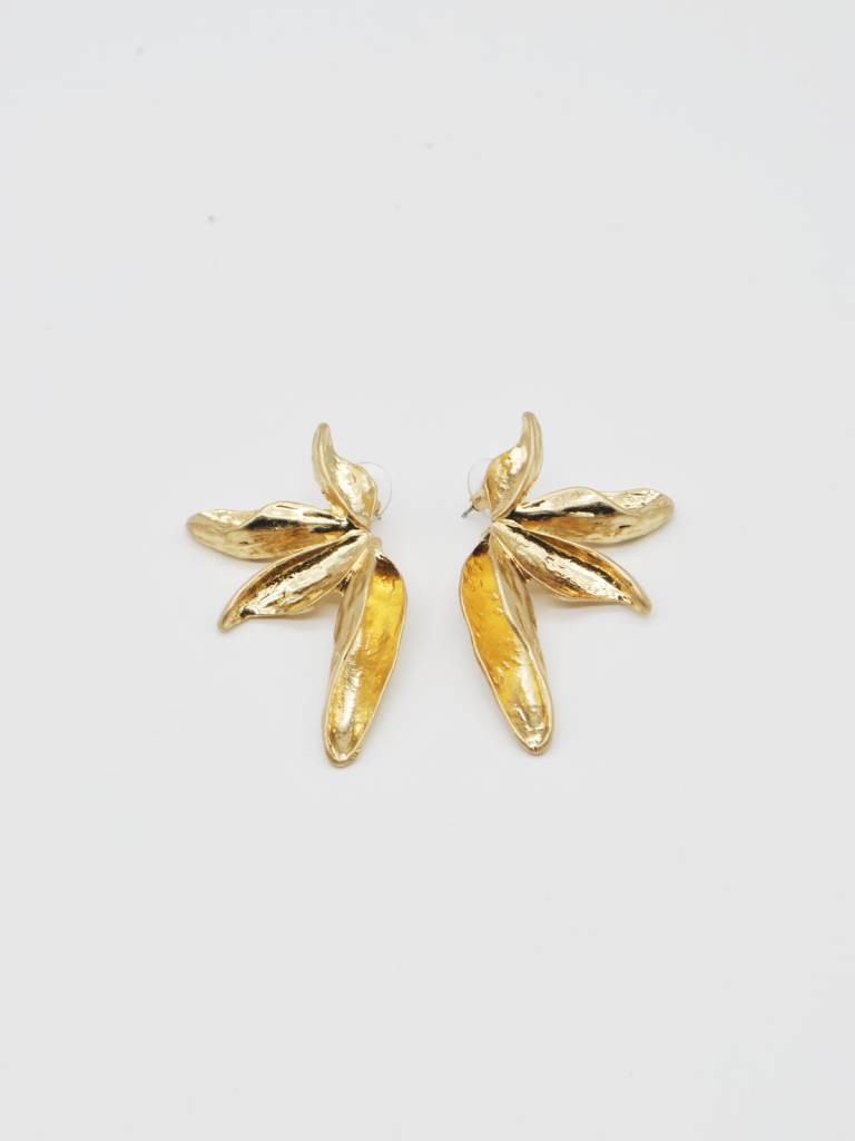 BRINCOS DOURADOS COM DESIGN INSPIRADO EM PÉTALAS DE FLORES COM ACABAMENTO TEXTURIZADO.