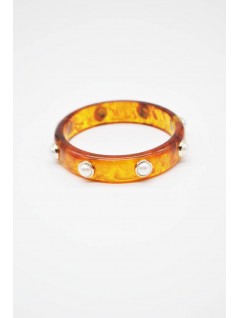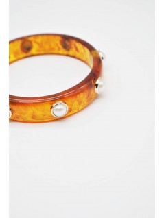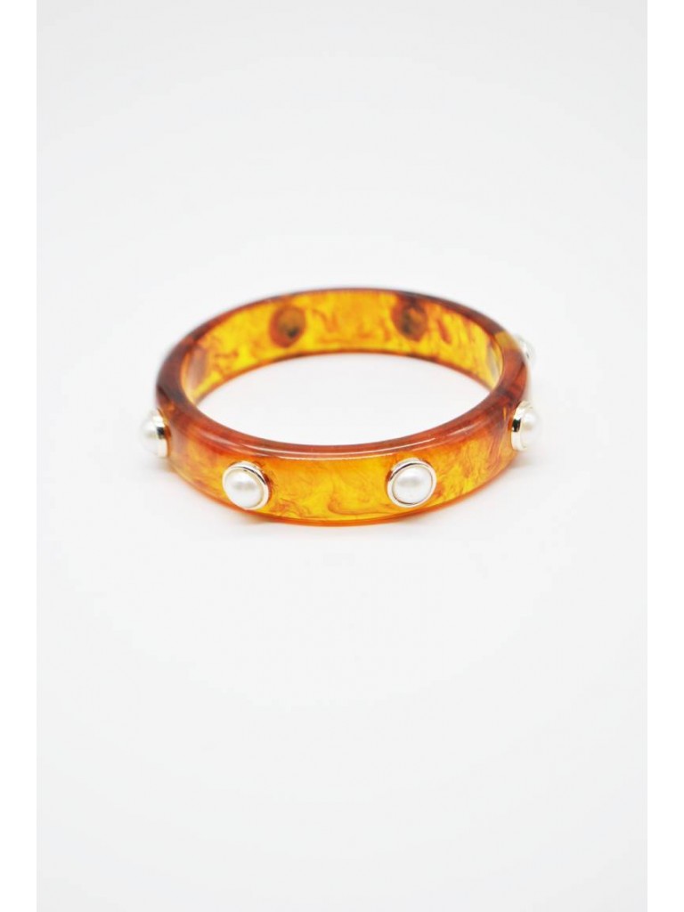 Pulseira rígida com detalhes de pérola na sua superfície.