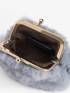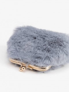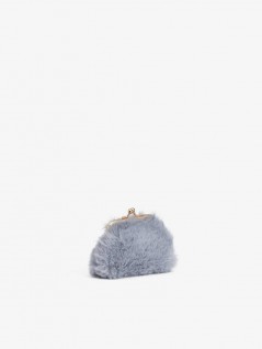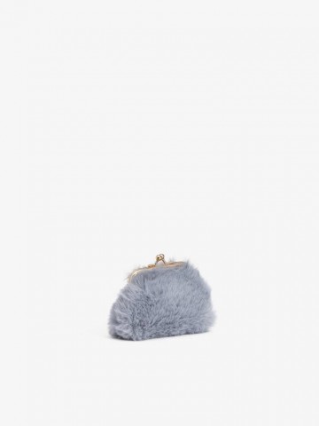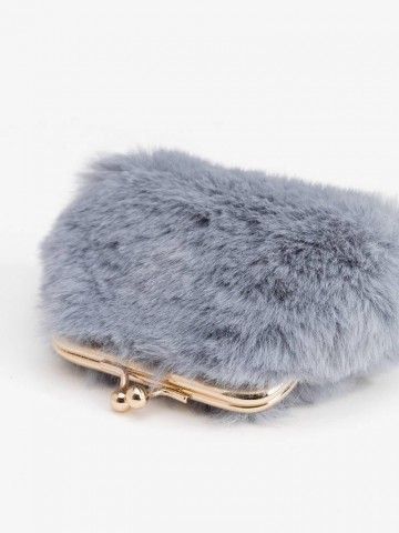 PORTA-MOEDAS EM AZUL CLARO COM TEXTURA PELUDA E FECHO METÁLICO DOURADO ELEGANTE.