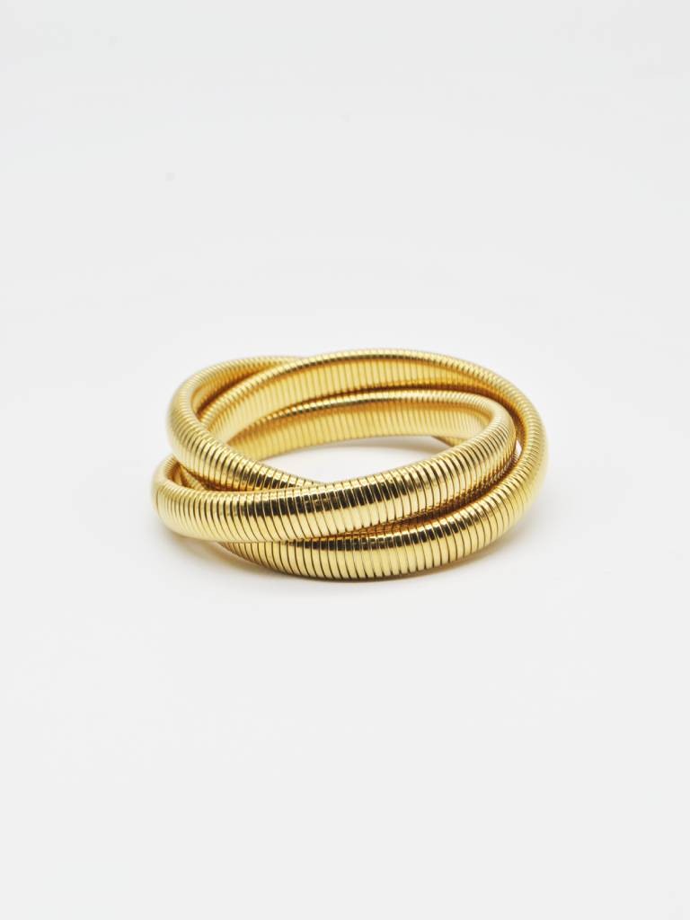 PULSEIRA RISCADA ENTRELAÇADA EM DOURADO.