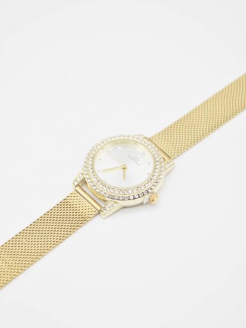 RELÓGIO ANALÓGICO COM MOSTRADOR REDONDO E BRACELETE DE AÇO INOXIDÁVEL, DESTACANDO-SE PELA DURABILIDADE E ELEGÂNCIA.